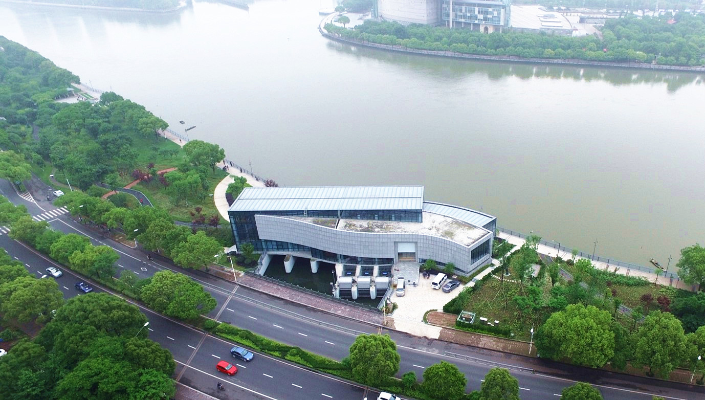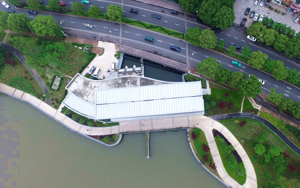 保豐碶閘站位于現(xiàn)有濱江公園范圍內(nèi),通過合理的建筑布置與現(xiàn)代的建筑設(shè)計,將水利廠房與周邊的景觀進(jìn)行了有機(jī)結(jié)合,同時考慮到本工程的悠久文化底蘊(yùn),于泵站內(nèi)設(shè)置了文化長廊,建成以后成為了寧波水利的一個重要對外窗口。